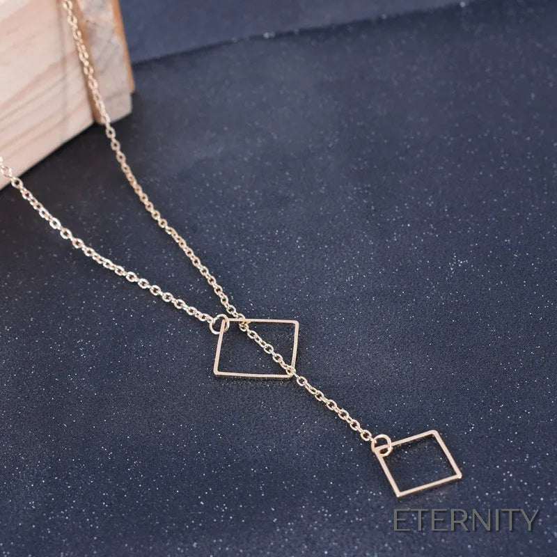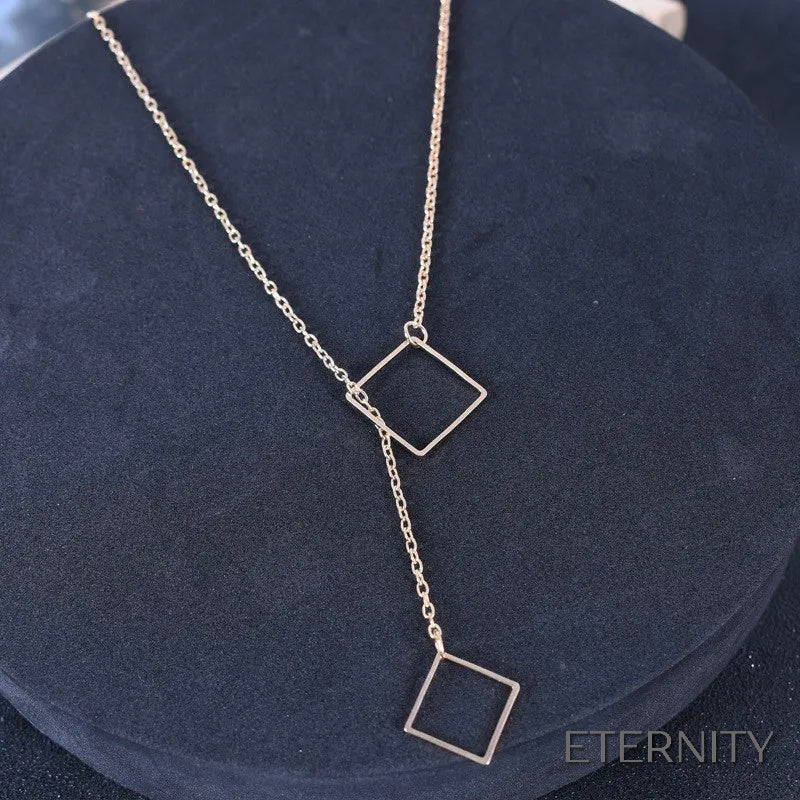 Cadena Dorada Delicada con Doble Dije Cuadrados - ETERNITY