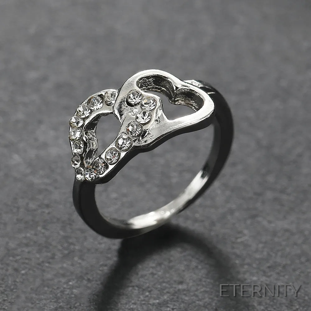 Un conjunto esencial lleno de amor y brillo para complementar tu estilo Este elegante set de cuatro piezas de ETERNITY incluye una cadena, una pulsera, un anillo y zarcillos, todos con un delicado diseño de doble corazón adornado con deslumbrantes rhinestones en un acabado dorado. Una elección atemporal y femenina con detalles luminosos que añaden un encanto moderno y romántico a cualquier ocasión. Un esencial para expresar tus sentimientos con elegancia. #ETERNITY #DesignedToSparkle