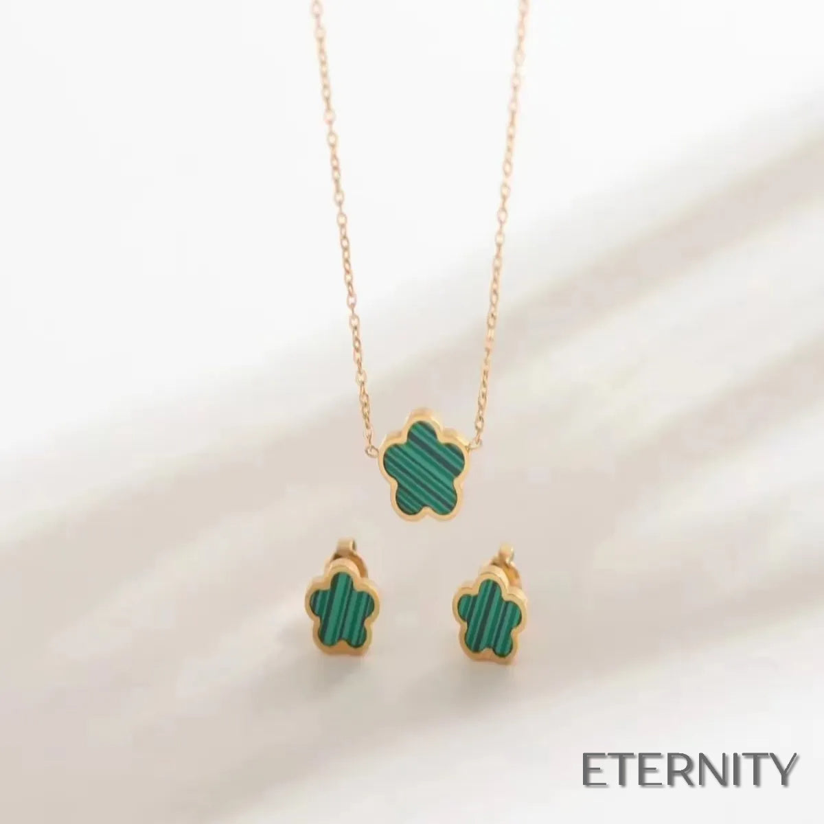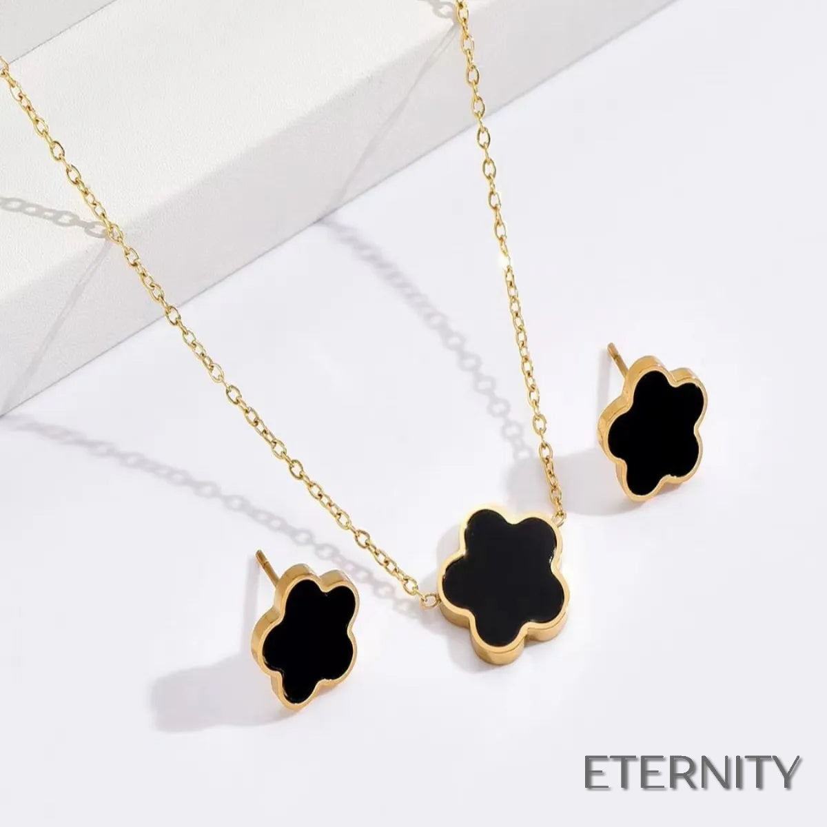 Un jardín de estilo para complementar tu belleza. Nuestra colección de Sets de collar y pendientes de ETERNITY presenta delicados dijes dorados en forma de flor de cinco pétalos, disponibles en una variedad de colores vibrantes. Un accesorio atemporal y femenino con detalles encantadores que añaden un toque moderno y alegre a cualquier look. ¡Elige tu color favorito para cada ocasión! #ETERNITY #DesignedToSparkle